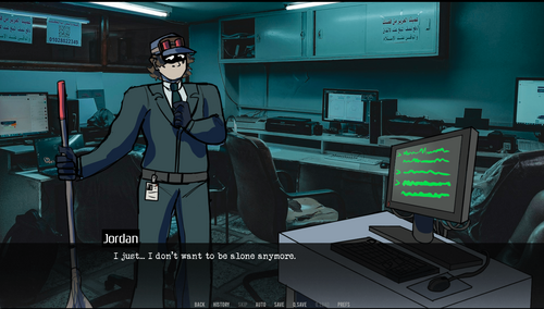 This week I've been working on programming the scene immediately after the CG where Percy and Jordan first meet, as seen in the attachments. It's been slow going, admittedly. Myself and many others on the team have had a major increase in real life responsibilities lately, especially regarding classes and work. As such, production has slowed down quite a bit -- but it hasn't stopped.